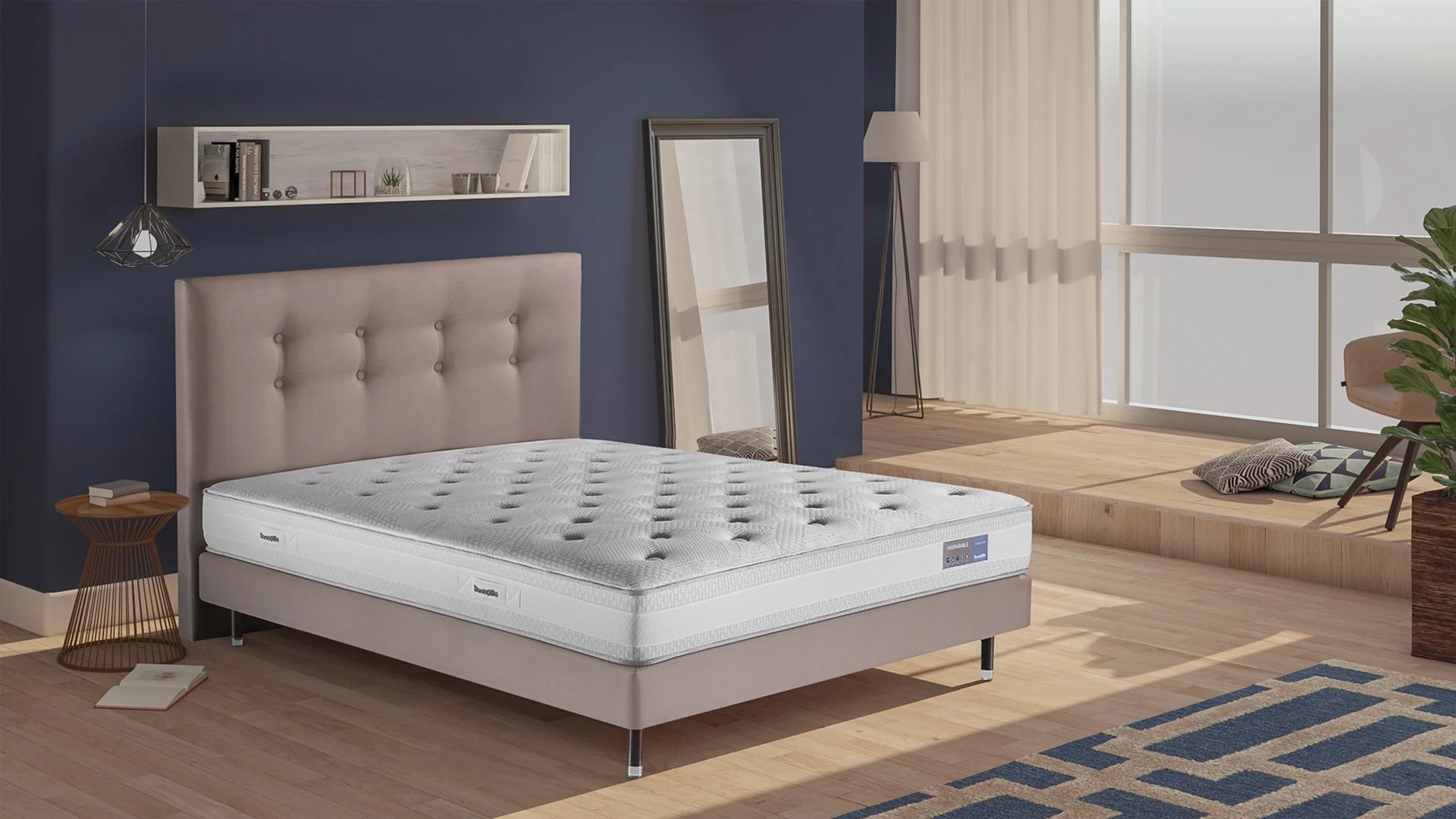 Renders de interiorismo y Virtualidad Aumentada (VA) para el fabricante de camas Dunlopillo Francia. La Virtualidad Aumentada (VA) consiste en insertar objetos reales, en este caso camas y cabeceros, en entornos virtuales como renders 3D.